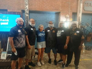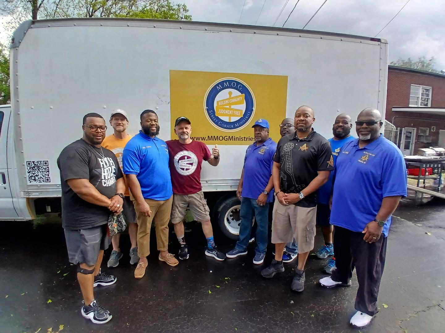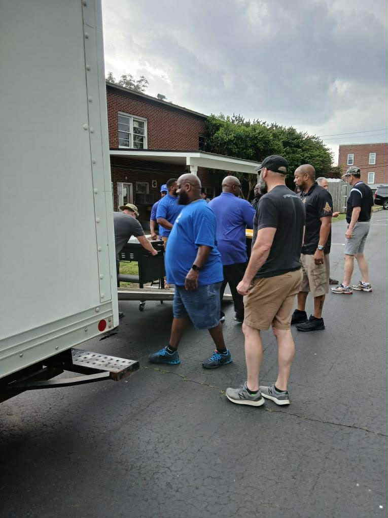 Our brothers lend a helping hand to the Mighty Men of God Ministry by setting up food for their community meals—serving others in faith, fellowship, and brotherly love.